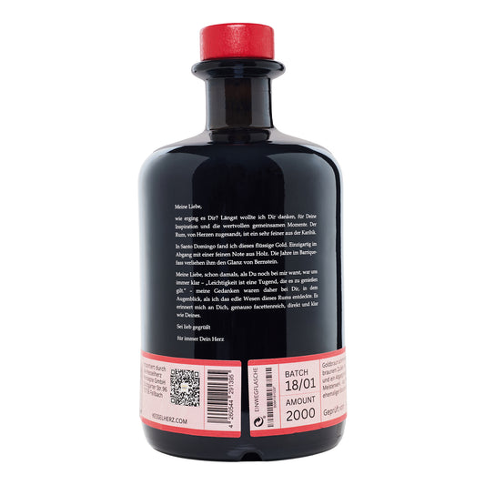 Eine Komposition, die nach Vanille und Rosinen duftet. Den Gaumen mit zimtiger Würze, gepaart mit einer dezenten Kakaonote kitzelt und sich lang und weich mit einer feinen Cognacfass Note verabschiedet.