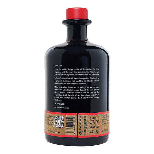 Hergestellt aus frischem Zuckerrohrsaft, gereift im EX-Bourbon Cask mit Sherry Cask Finish.
